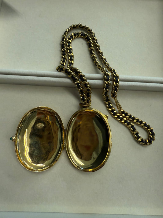 CHANEL RARE JUMBO LOCKET WITH LEATHER GILT CHAIN NECKLACE 1994