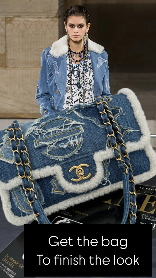 CHANEL 19A EGYPTIAN DENIM BLUE SHEARLING HIEROGLYPHIC MEDIUM FLAP BAG PARIS-NY GHW